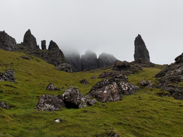 Please forgive me for not including a cat picture this month, but I can't resist sharing some Scotland photos. These are from a volcanic formation called the Old Man of Storr on the Isle of Skye, and if this isn't the entrance to some fairy kingdom, I don't know what is: